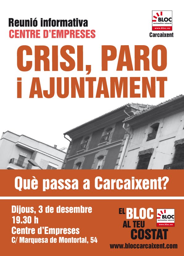 Després de la parada pel plenari municipal reprenem la campanya “El Bloc al teu costat”, explicant barri per barri la incidència de la crisi a nivell municipal, plantejant algunes propostes per pal•liar els seus efectes, i denunciant la inactivitat del govern municipal, al temps que recollim les inquietuds del veïnat.